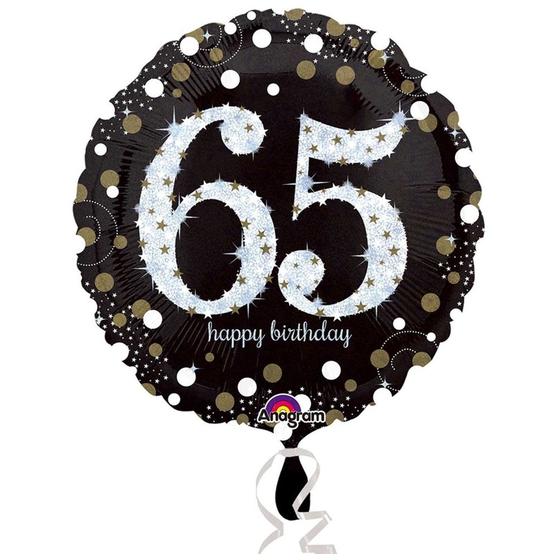 The Golden 65th Birthday foil balloon will add sparkle to your celebration. With its 46cm diameter and golden color, it will highlight every moment of your birthday.