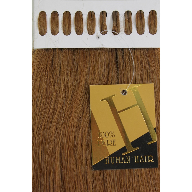 Set of 100 Extensions with I-Tip Bonding each weighing 1 Gramm. Total weight of the set is thus 100 Gramm. Length is 18 inches. The originally black asian hair has been processed and dyed in a medium brown hue (Standard 8). You need shrinkies or micro-rings to bring I-Tip extensions in your hair..Natural looking hair extensions made from 100% human hair – with 1 Gramm per extension/strand these extensions are very full – a lot of cheaper sets on the market only offer 0,5 per strand. The whole set has a weight of 100 Gramm as it contains 100 of these I-Tipped extensions. To use I-Tips in your own hair you need shrinkies or micro-rings.Product no.: 18HH-1G-8(D072)