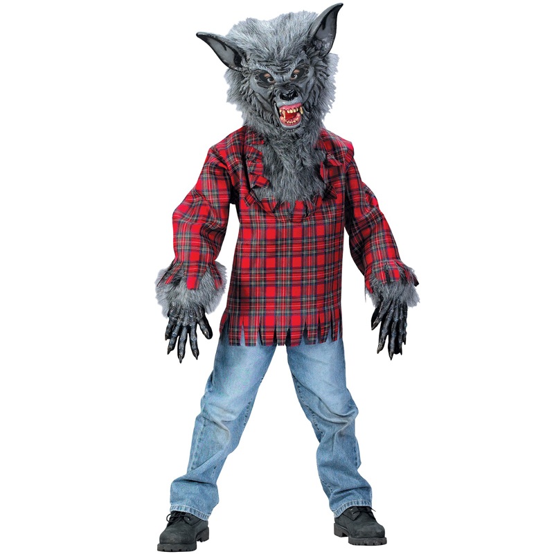 DescriptionWhat do grey wolves and boys have in common? They're both wild! Let your kid let loose this Halloween in this fun Werewolf Costume for kids. The grey fur will keep him warm while he stalks the streets for prey (or candy)!Item features:ShirtGlove